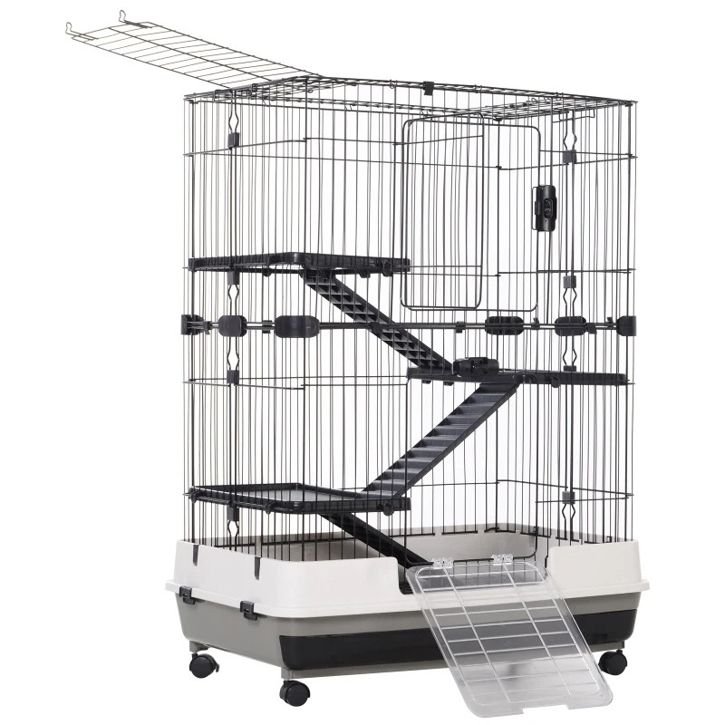 4-Level Small Animal Cage Rabbit Hutch With Universal Lockable Wheels, Slide-out Tray For Bunny, Chinchillas, Ferret, Black